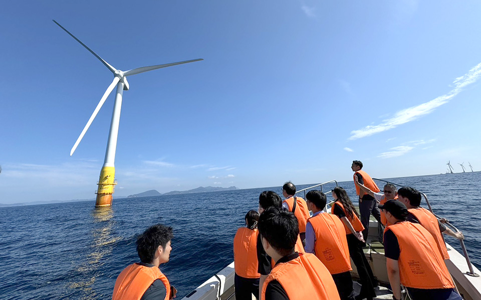 | 内 容 | 全11日間の日程で、GWO基本安全訓練5モジュールの受講や浮体構造物の模型製作ワークショップを実施します。五島での研修や海底ケーブル敷設船等の視察を経て、国内5海域のいずれかを題材とした漁業協調・地域活性化プランをチームで策定・発表します。 |